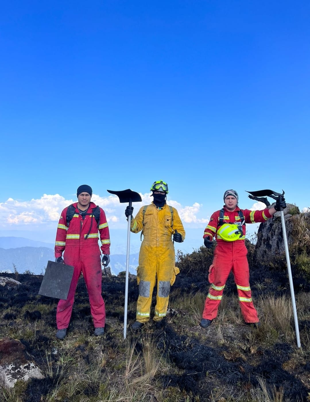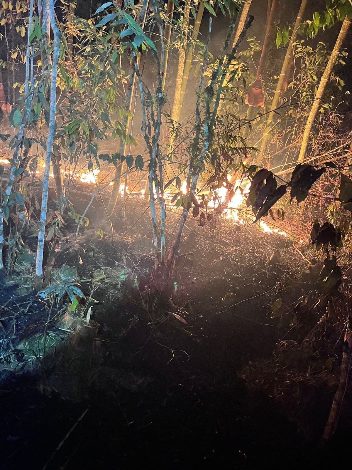 Personal del Cuerpo de Bomberos Chinchipe, sofocando el fuego ocasionado en la parte alta de la parroquia San Andrés, específicamente…